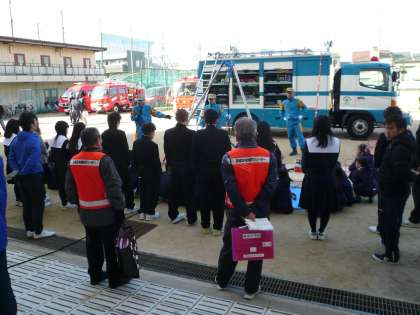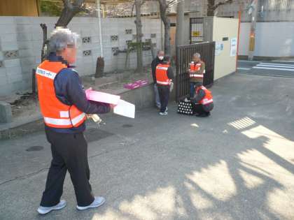 ○土曜授業にあわせ,地域の「防災リーダー」さんと区役所の「防災担当」の方が来られました。避難場所の確認を行われました。