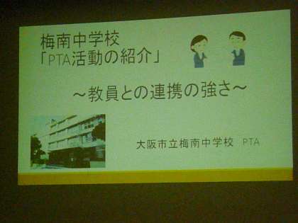 29日(日)西成区民センターホールにて開催されました。前半は,西成警察署の少年係長様ら3名の方をお招きしての人権講演会。後半で,橘小,岸里小の発表の後,本校PTAが「教員との連携の強さ」をテーマに事例発表をし,本校の校長ほか教員も応援に駆けつけました。校区小学校のお二人の教頭先生方も来てくださっていました。