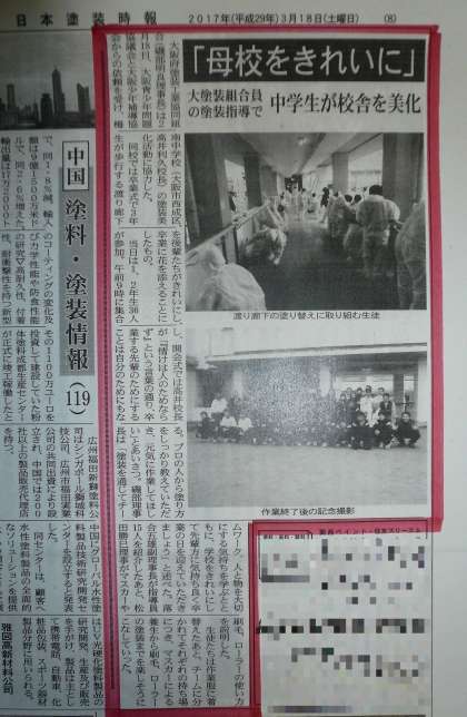 先月18日(土)の環境美化活動の様子が塗装関係業界紙(『日本塗装時報』)に掲載されました。