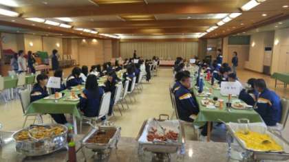 6時30分起床、健康観察、荷物整理をして7時に集合、朝食となります。