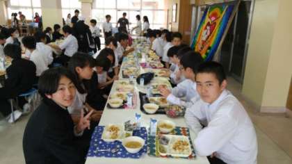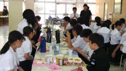 給食当番がてきぱき準備、みんなで「いただきます!」