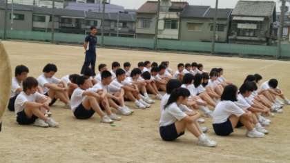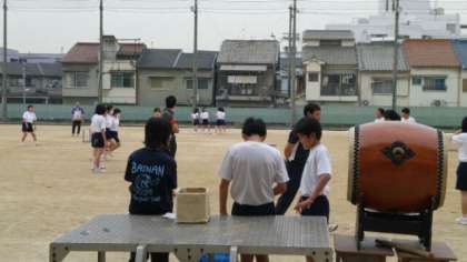 太鼓を使って、合図をします。終了5分前に集合もできています。