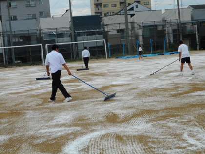 部活動生を中心に、たくさんの生徒が参加してくれました!放課後体育大会の打ち合わせもあったので、目標終了時刻を17時としていましたが、みなさんがてきぱき動いてくれたおかげで、なんと!16時25分には解散!!素晴らしいです。今日明日は使えませんが、来週には走りやすいグランドになっているでしょう。