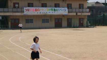 まず、大きな歌声!の校歌斉唱に始まり、走ったり、2人3脚の競走をしたり、楽しく声を掛け合いながら練習しています。