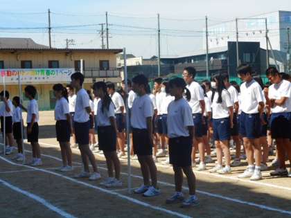 1枚目は開会式。今日は棒のみですが、本番は各学級旗を体育委員が持ちます。さすが体育委員!見本になる立ち方です。