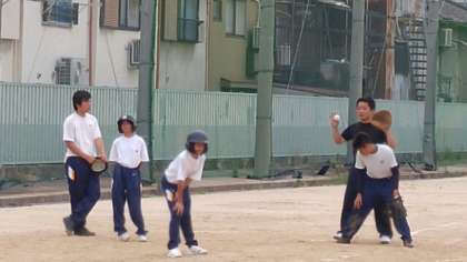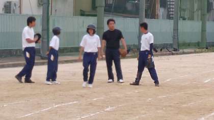 顧問からは、「ランナーはピッチャーのフォームを見てスタートすること、キャッチャーの動きを見ながら走ること!」「バッターは必ずスイング!」と指導が入ります。