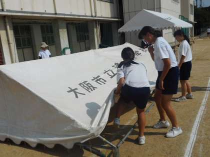 テントの設営、椅子運びなどの力仕事や、得点や救護についての最終確認等を行いました。