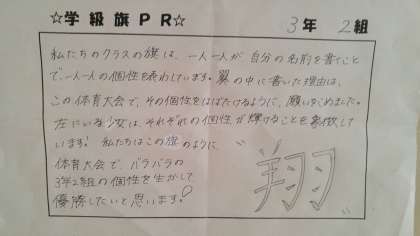 明日は、学級旗部門の表彰もあります。楽しみにしておいてください。