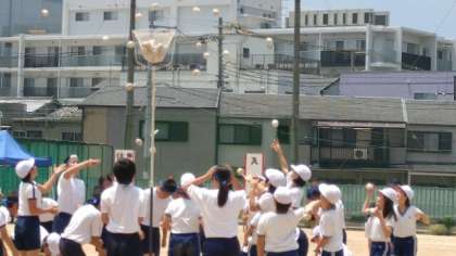午前中最後の競技、小中合同玉入れです。