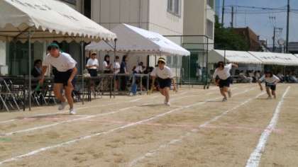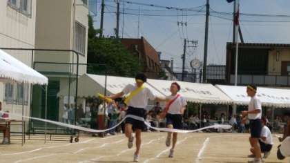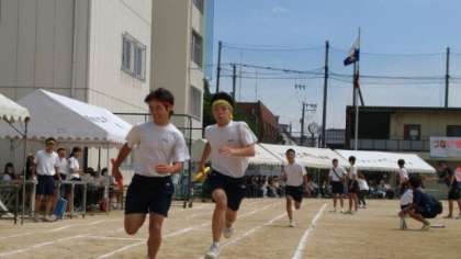 スウェーデンリレー男子は、3年1組が僅差で2年生を抑え、1着でゴールしました。