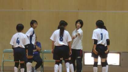 第2セットも相手サーブに苦しめられます。タイムアウトで顧問から指示を受けます。