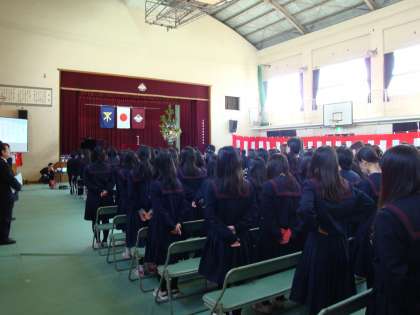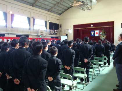 写真は、国歌斉唱・校歌斉唱の様子です。