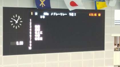 本校の最初の出場は3年女子100m×4のメドレーリレーです。