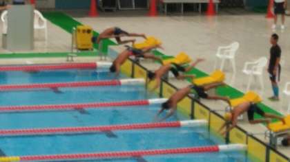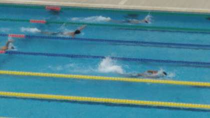 最後は、1年生男子(第1レーン)です。初めての公式戦ということもあって椅子で待機しているときから緊張気味のようです。