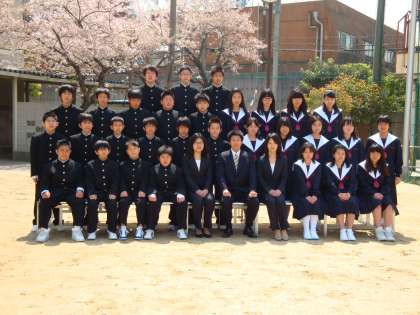 本日、学級写真の撮影を行いました。すばらし過ぎる天気で、少しまぶしかったようです。写真は、1年生の撮影の様子です。