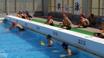 それぞれ第1レースの様子です。パドルとは手のひらに付ける水かきのようなものです。