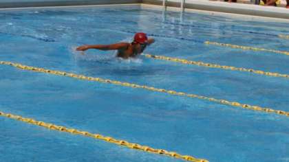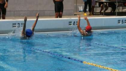 1枚目の写真は、背泳ぎのスタートの瞬間です。