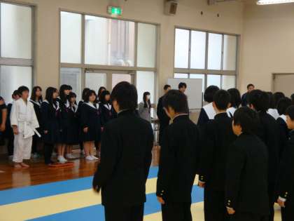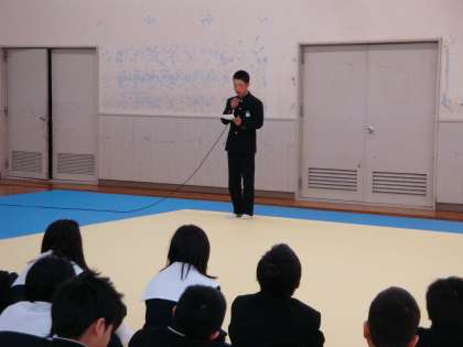 写真は、「生徒会役員の終わりのあいさつ」と「紹介をしてくれた先輩へのお礼」の様子です。