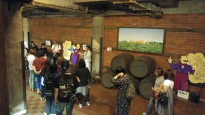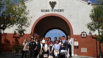 昼食後は、神戸ワイナリー見学です。地下はワイン貯蔵庫の冷気のためエアコンなしでも涼しい状態でした。