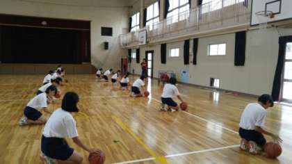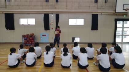 先週1週間の授業見学を経て、今日は、初めての授業。内容は専門のバスケットボールです。さっそく冊子を作って説明、実技に取り組ませていました。