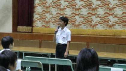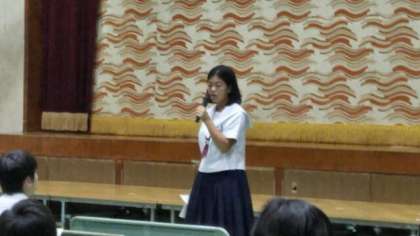 今年のテーマは「絆」、スローガンは「Let’s協力 Make絆 Keep伝統」です。まず、文化委員会委員長さんから「初めの言葉」、そして、副委員長さんからの「諸注意」がありました。
