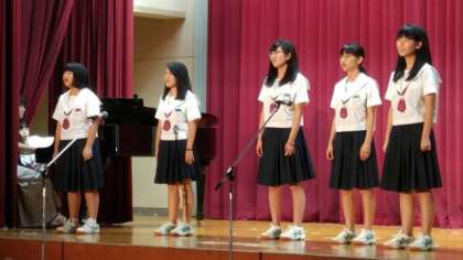 続いて、音楽部による「校歌」「大丈夫」他2曲です。校歌は、アカペラで美しく歌われました。歌い方によって全く違う雰囲気の歌になりました。