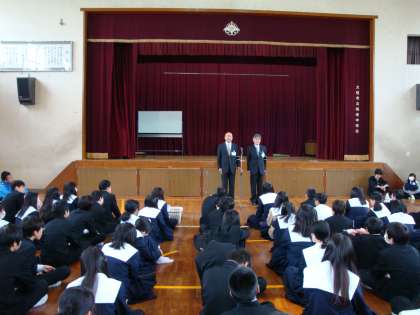 子どもたちが、安全で安心した学校生活が送れるように、西成区の全小中学校20校に『スクールサポーター』が配置されました。今日は、全校集会で本校を担当する2名のスクールサポーターを子どもたちに紹介し、挨拶をしていただきました。子どもたちをしっかりと守ってくれる力強い味方が、また増えました。「よろしくお願いいたします!」
