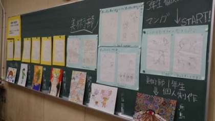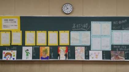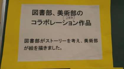 展示(C−1教室)図書部・美術部です。図書部がストーリーを考え、美術部が絵を描いた作品です。文科系ならではの取組です。