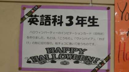 続いて3年生は、ハロウィンのインビテーションカード(招待状)です。きれいに飾り付けされた招待状の数々でした。