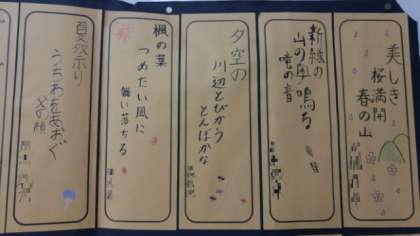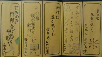 3年2組では、「せみの声 門限告げる 母親や」「新緑の 山の奥鳴る 滝の音」などの作品がありました。