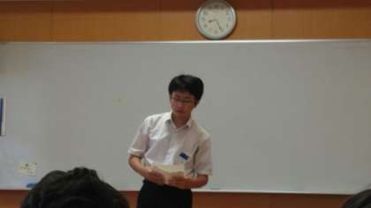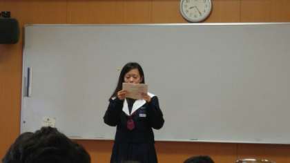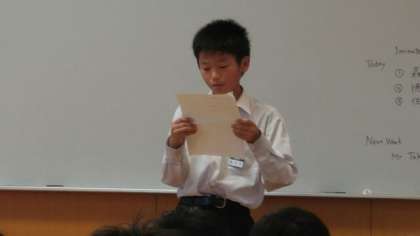 今日は、3人のスピーチがありました。「バレーボール」「ハムスター」「スタジオジブリの映画」についてのスピーチがありました。