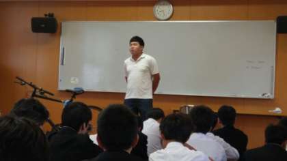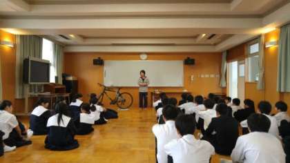 今日の1年生学年集会「1分間スピーチ」は、テスト明けのためお休みです。代わりに1年生の先生から「ロードバイク」をテーマにスピーチがありました。また、スピーチとは別に「人の気持ちを考えて行動しよう」というお話もありました。