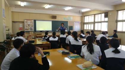 10月27日の3限、1年生の技術の授業の様子です。この日は、技術科の研究授業でもあります。木工室でまず、「入ってはいけない所」「触ってはいけない物」「いろいろな工具の使い方」など諸注意がありました。