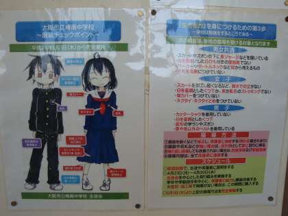 昨年度は、2学期の懇談会時から服装改善の取組を実施し、卒業式直前には、ほぼ全員きちんとした服装で学習活動が行えるようになりました。今年度も、家庭訪問では服装の再点検をお願いしてきたところです。本日、5月1日からは、学校においても再度指導の徹底を図っています。保護者の皆様、ご協力をよろしくお願いいたします。写真は、各学級や廊下に掲示されている生徒会作成の啓発のポスターです。保護者用配付プリントはこちら⇒