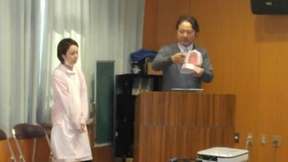 後半では、実際の歯ブラシの使い方についてのお話もありました。模型を使って丁寧に教えていただきました。「歯ブラシは鉛筆を持つくらいの感覚で、ゴシゴシではなくシャカシャカ程度の力で。」他にも、「食後、20分までに歯磨き(出来なければ口をすすぐだけでも)をすることが望ましい。」「よく噛んで食べると唾液がよく出るので虫歯予防になる。」など教えていただきました。お忙しい中、ありがとうございました。