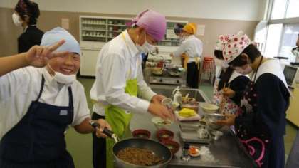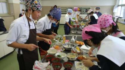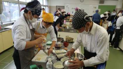 同じく5・6限、2年生B組の様子です。B組の写真は、完成の少し前。みんなで協力して作っている様子がよくわかると思います。