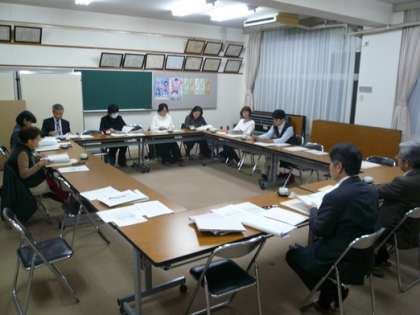 19:00からの学校協議会の様子です。「運営に関する計画」の中間評価の承認や「学校元気アップ地域本部事業」について、西成区役所からのお話等、様々な項目について意見交換等行われました。