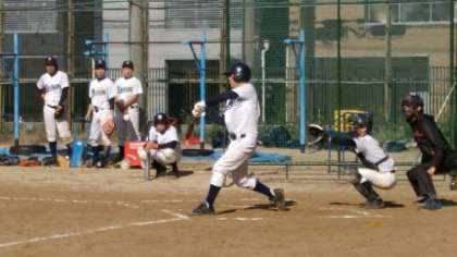 11月19日(日)、野球部が本校グランドにて東我孫子中学校と練習試合をしました。1試合目は、13対5で勝利。写真は、投手戦となった2試合目、1対1で迎えた6回表梅南中の攻撃からの様子です。この回1点を勝ち越し、2対1となりました。