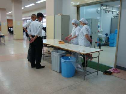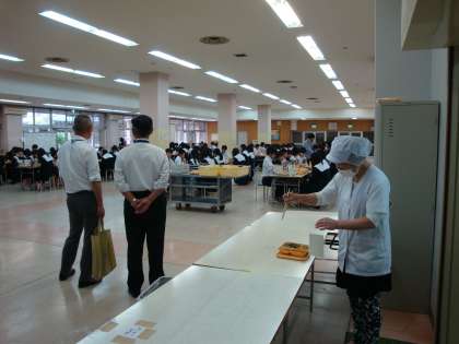 本日、西成区長が給食の視察に来られました。先日、学校独自で実施した『給食アンケート』の結果や課題等について話を聞いていただける機会を持つことができました。『給食アンケート』の結果については、後日、報告をさせていただきます。