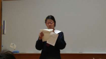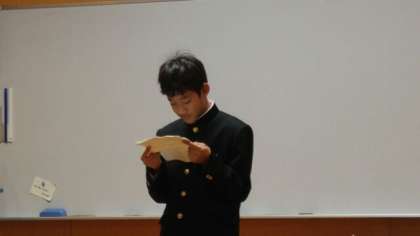 今日は、3人のスピーチがありました。今日は、全員食べ物についてでした。「めんたいこ」「みそ汁」「カレー」についてのスピーチがありました。