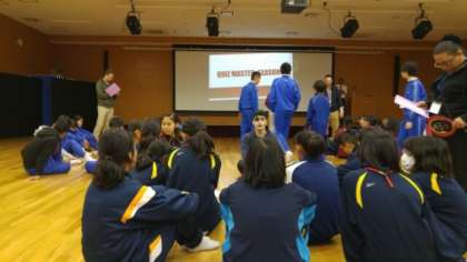 たくさんの大阪市内の中学生とC−NETが参加していました。本校C−NETの先生も「スポーツリレー」のコーナーを担当していました。最後の写真は、「クイズ」のコーナーです。参加している生徒たちを見ると、非常に楽しそうにしていました。英語に興味のある人は、来年ぜひ参加してみてください。