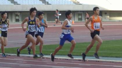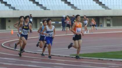 続いて、第4組です。このレースも高校生や社会人も出場しています。写真は、レース終盤に向かうところ、他の選手を追い抜くところです。3000mの長距離を、1000mにつき4分を大幅に切るペースで走り切り、長距離初出場とは思えない力強い走りを見せてくれました。