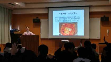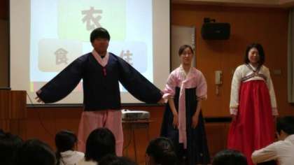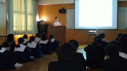 12月18日(月)、1年生では多文化共生・国際理解教育の一環で、お隣の国である「韓国・朝鮮の衣食住」について国際クラブ(朝文研)担当講師(ソンセンニム)のお話を聴きました。「衣」のパートでは、本校教員もモデルとして参加しました。また、「食」のパートでは、〇×クイズ形式でいろいろな問題を考えました。日本で一番食べられている漬物は「キムチ」、韓国・朝鮮では、「たくあん」が最も食べられているという面白いデータもあったそうです。