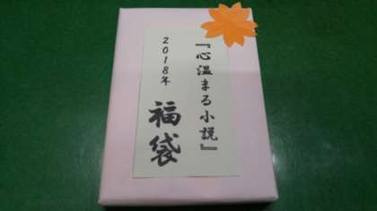 先日、「元気アップ図書だより」で紹介しましたが、来る1月18日(木)13:05〜13:20に図書室にて新春特別企画「福袋フェアー」を開催します。1枚目の写真は、図書室入口、2枚目の写真は、図書室内に展示していた「心温まる小説」を福袋にしたため展示していないことを案内するものです。3枚目の写真のように何が入っているか分からなくなっています。