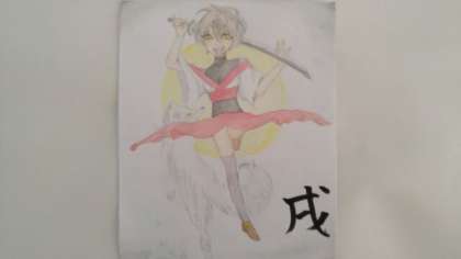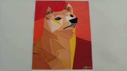 1枚目の写真は、貼り絵になっています。また、2枚目には犬の足跡が、3枚目には少女の後ろに犬が描かれています。