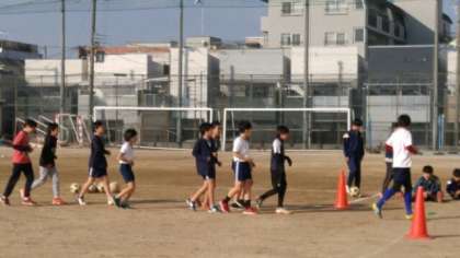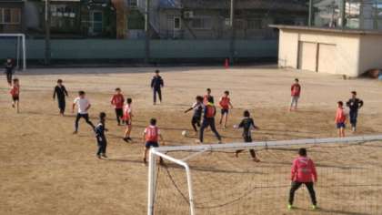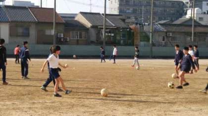 続いてグランドの様子です。まずは、サッカー部。ランニング、基礎練習の後一緒にゲームをしました。和気あいあいと楽しそうにプレーしています。