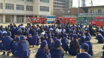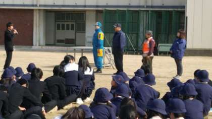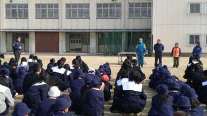 閉会の様子です。生徒会、梅南津守小校長先生のあいさつ等がありました。この日の防災授業の目的「児童生徒の防災意識や知識を身に付け、日ごろの備えや災害時には自ら危険を回避する行動ができることを目指す」は、達成できたのではないでしょうか。