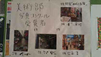 「第14回中学生絵画・写真コンクール」の入賞、佳作作品を紹介します。これは、西成区青少年指導員協議会が主催しているもので、本校では写真の部に出品しました。写真の部のテーマは「自慢のまち」です。