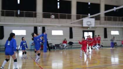もつれた試合も、終盤少しリードで迎えました。2枚目の写真は、相手サーブが外れたところです。この瞬間、第2セットも25対20で連取、バレーボール部公式戦初勝利!の瞬間となりました。
