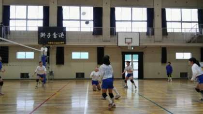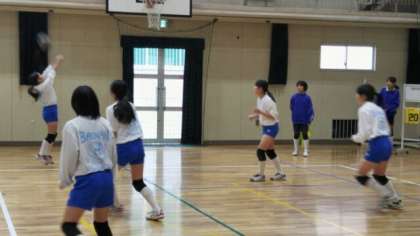 2月10日(土)、本校体育館に今宮小中一貫校を招いて練習試合をしました。第1セット、第2セットを連取した後の第3セットの様子です。このセットは、リードされたまま終盤を迎え、そのまま落としてしまいました。